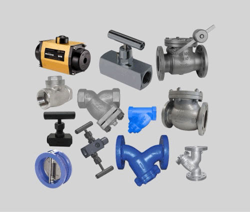 Válvulas de presión, tipo compuerta, globo, check y mariposa de diferentes diámetros.